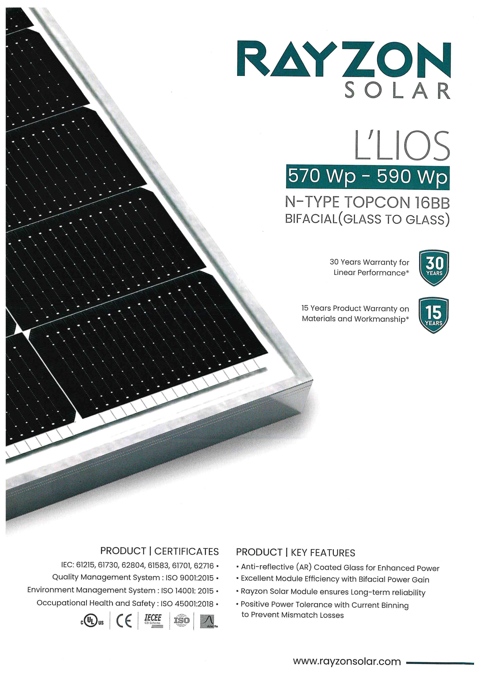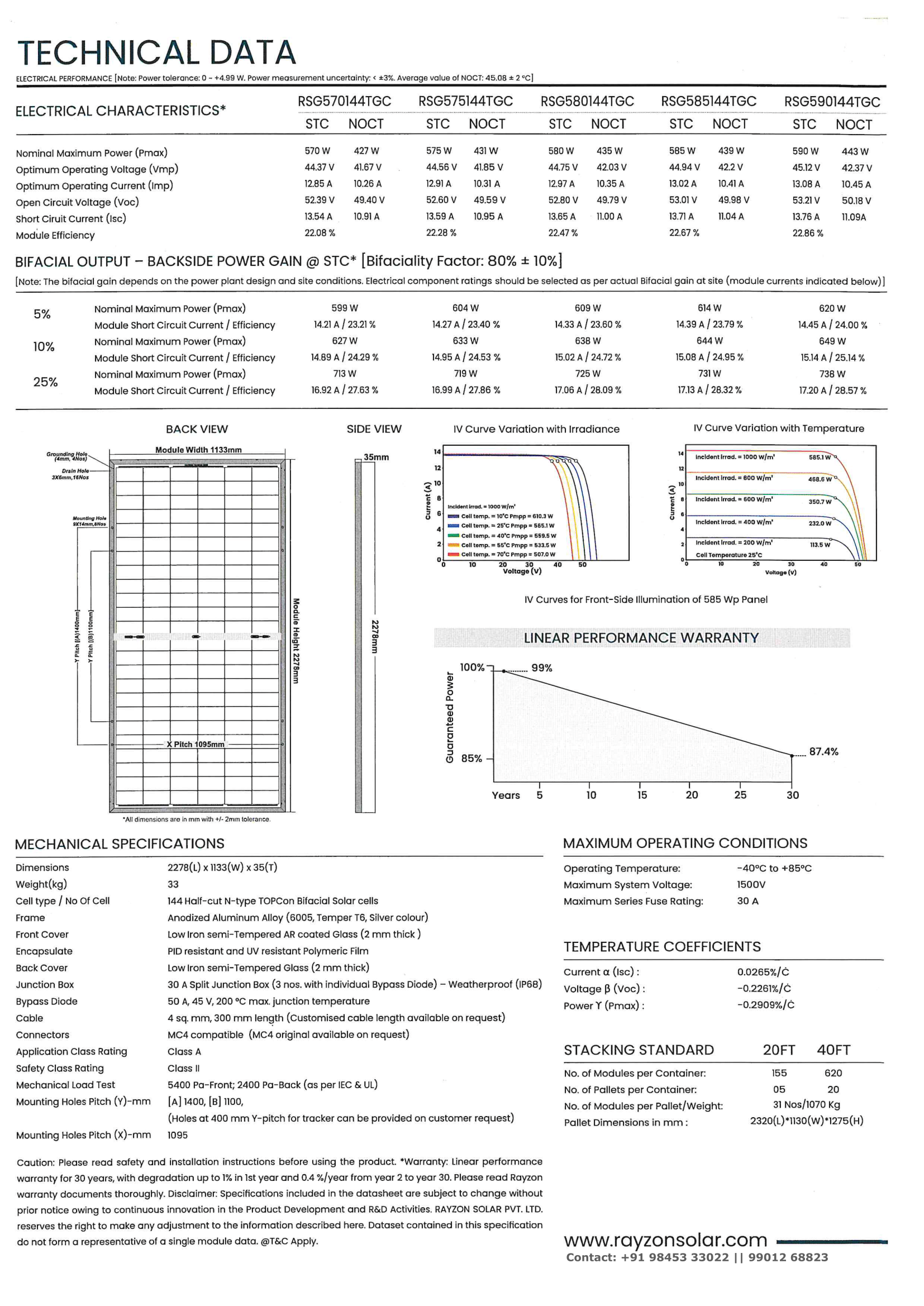 RAYZON Bi-facial 570 - 590Wp Data Sheet