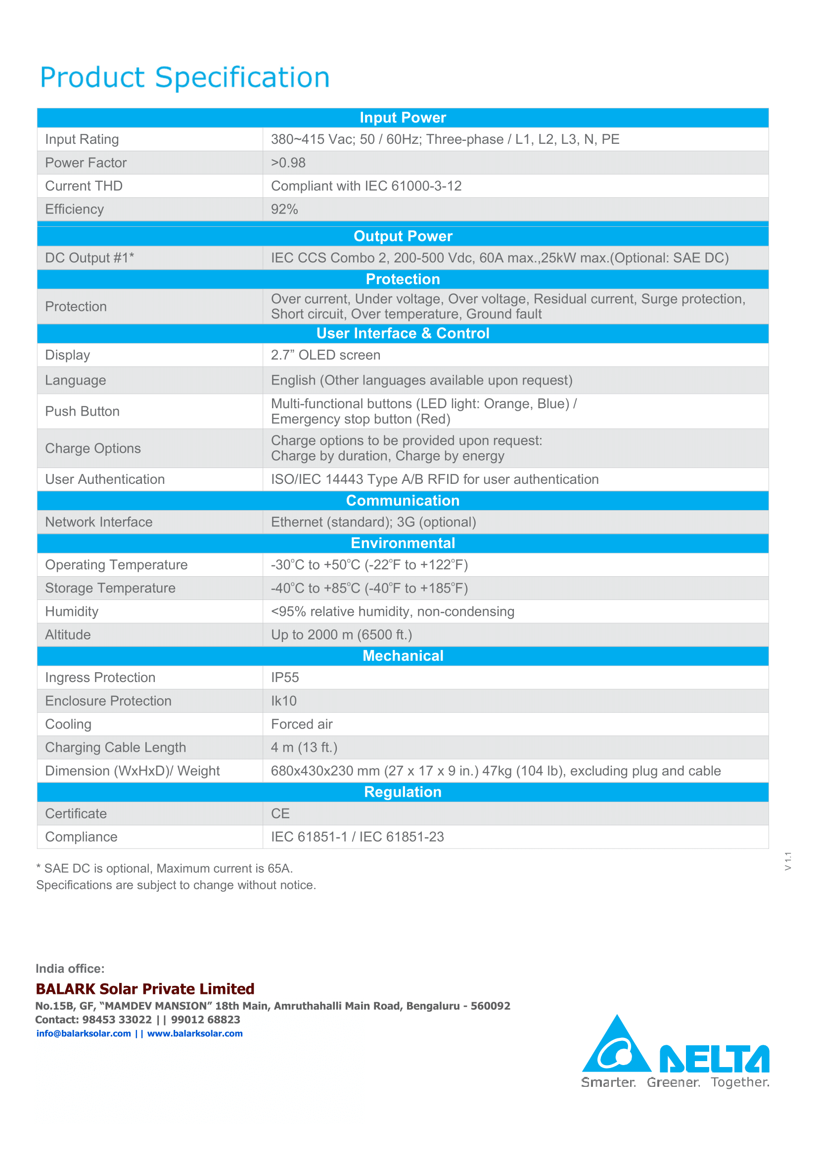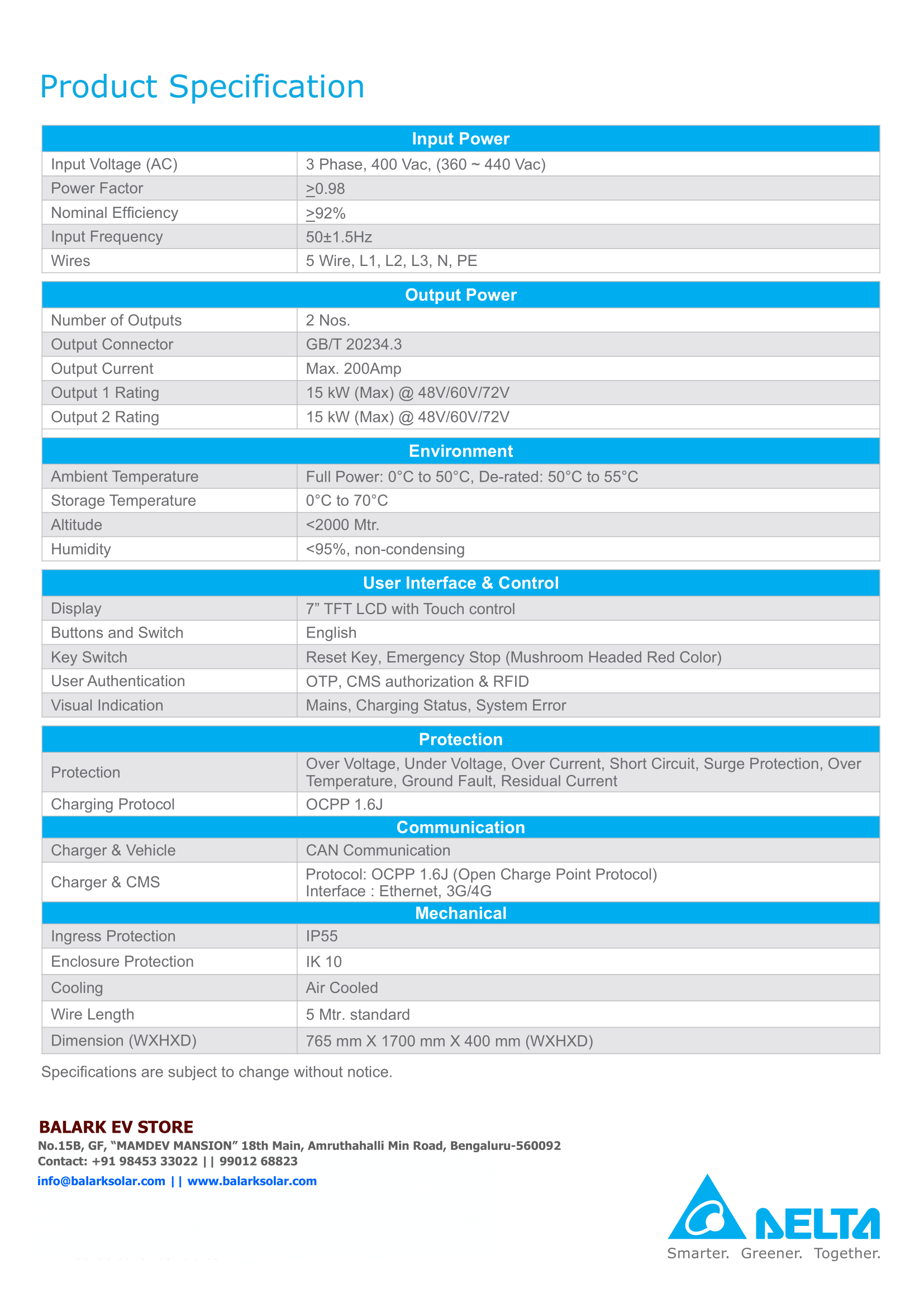 Output voltage range: 50-500Vdc (Combo); 50-500Vdc (CHAdeMO)